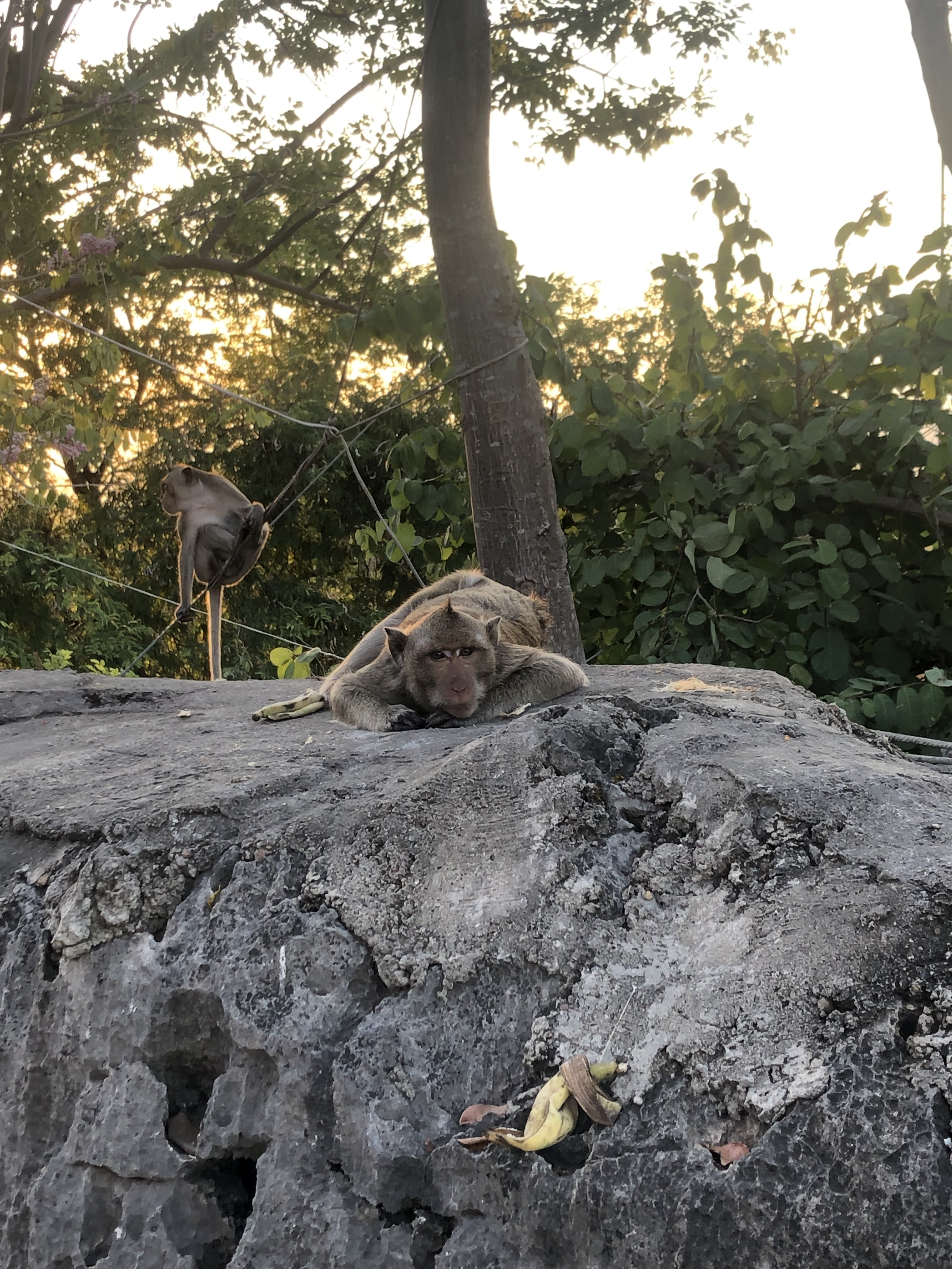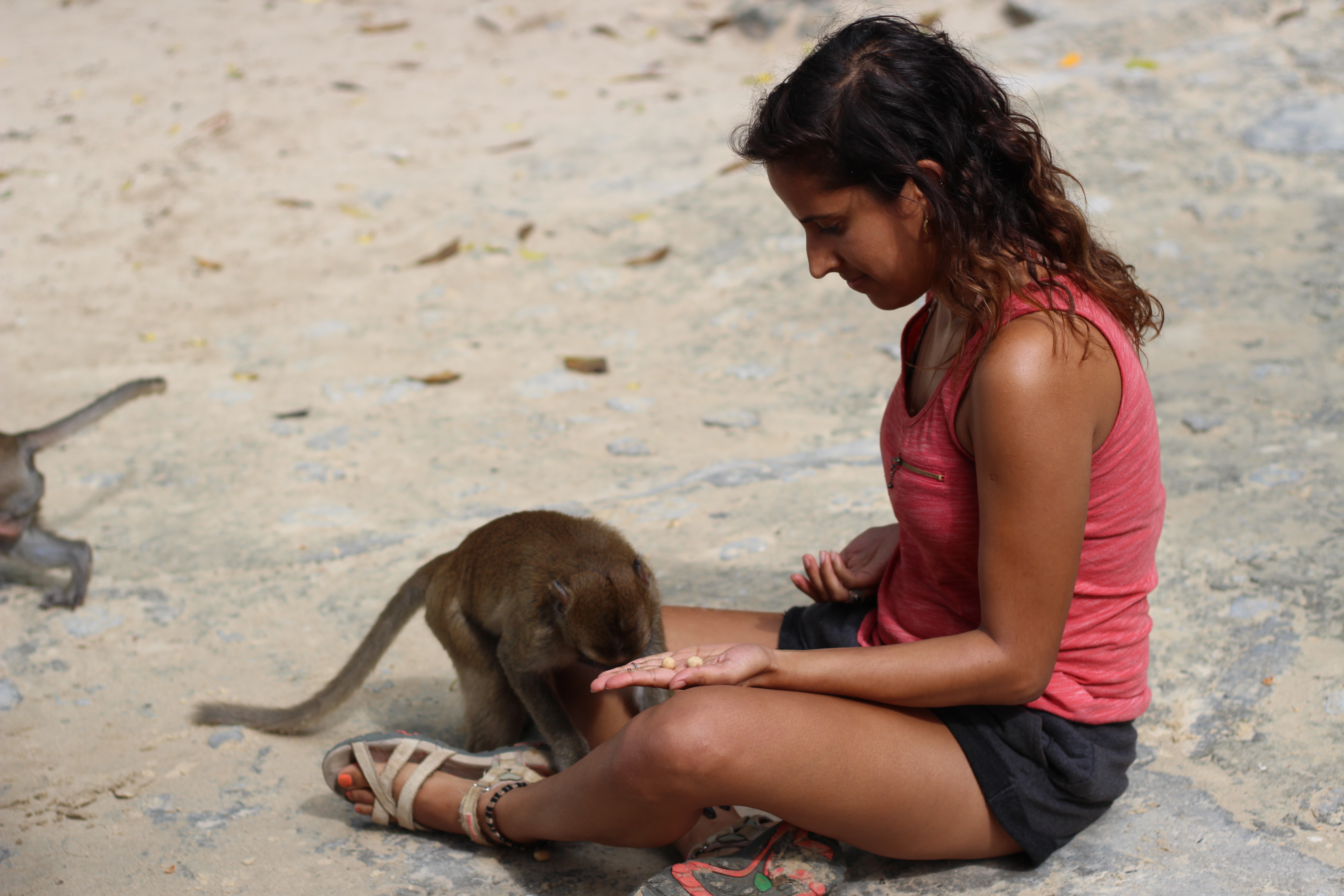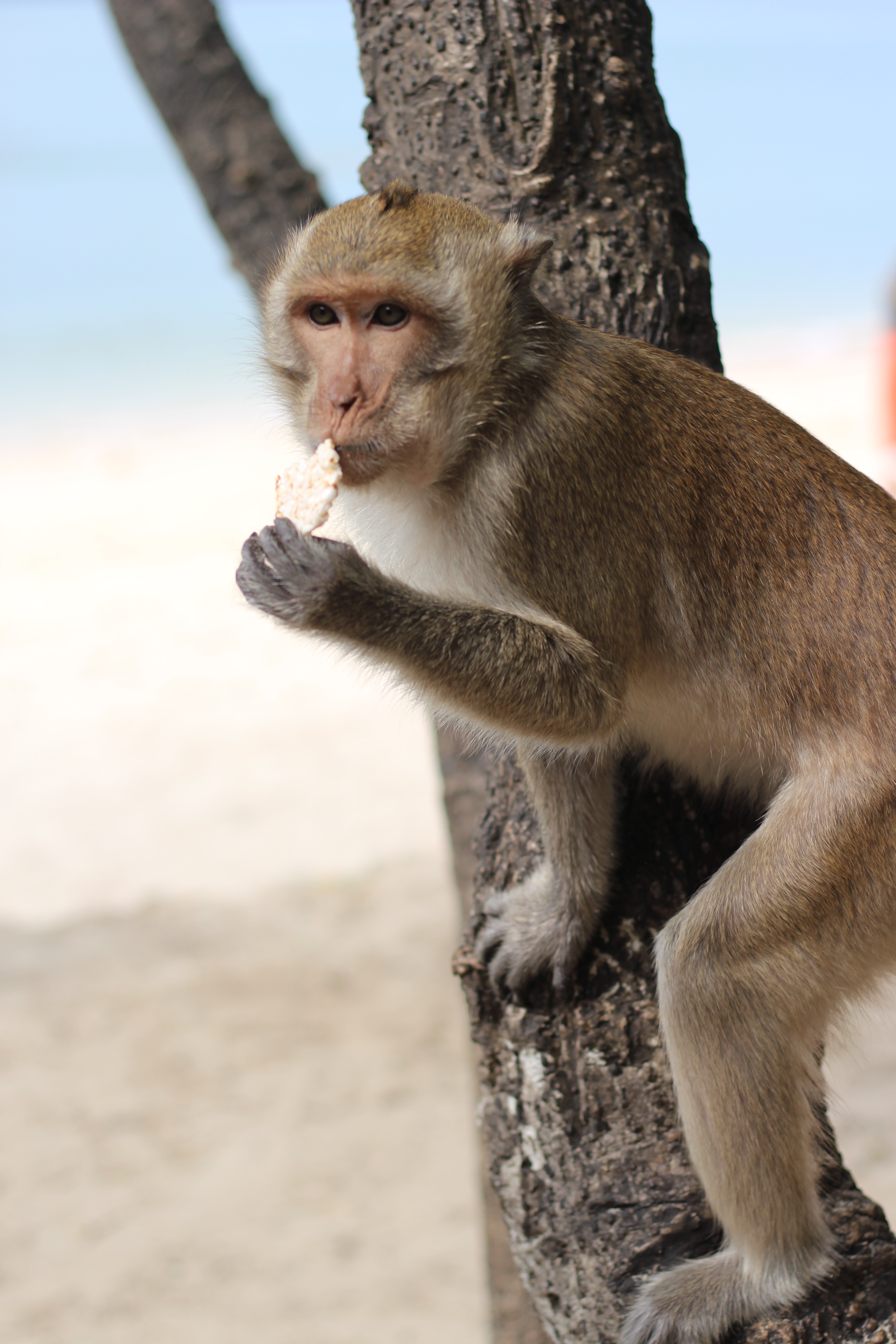 When we reached the pier and got into the long boat we were in for yet another stomach churning journey thanks to reckless sailing – this guy seemed like he was in it for a race rather than a simple trip across the bay! But before long we landed on monkey beach, coming face to face with its namesake primates, looking like they were ready to steal our bags. We took a seat on some rope swings, chilling as far from the monkeys as possible, sunbathing and reading our books for the duration of our stay there.