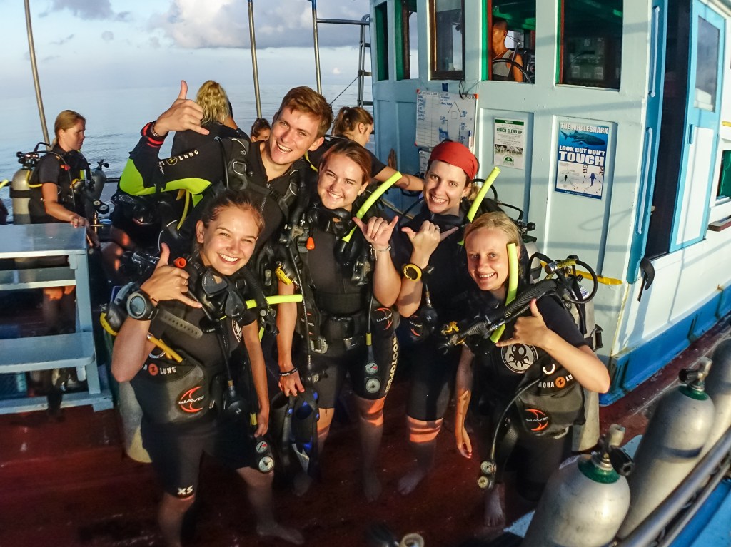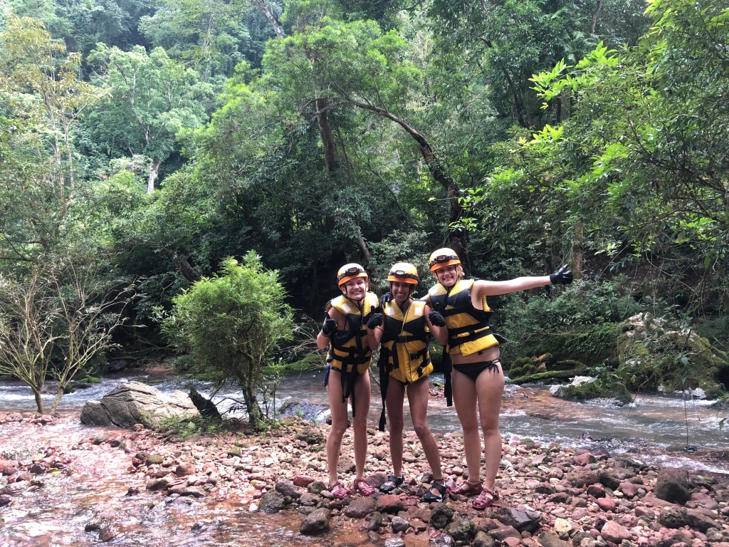 When we were introduced to the elephants I was in awe of them and overwhelmed to see the sheer size and power of them up close. We were able to feed them and walk with them through the jungle, watching them eat their way through the trees and covering themselves with dirt to cool down. Next up was the mud bath, which involved us throwing copious amounts of mud over them, each other, and the elephants kindly shitting in the water we were all standing in. The highlight of the day was washing them off in the river and watching one of the baby elephants playfully jump into the water from the rocks.