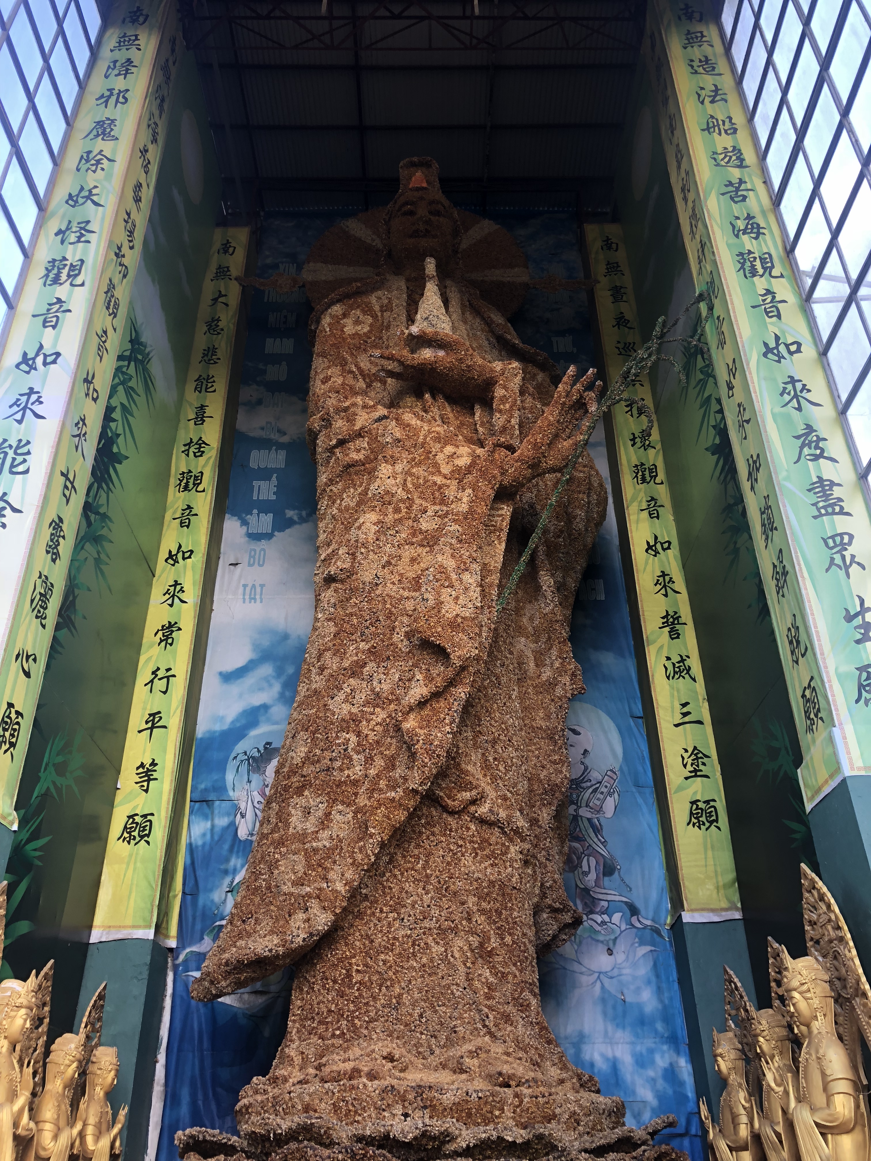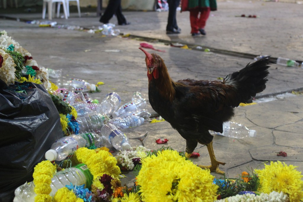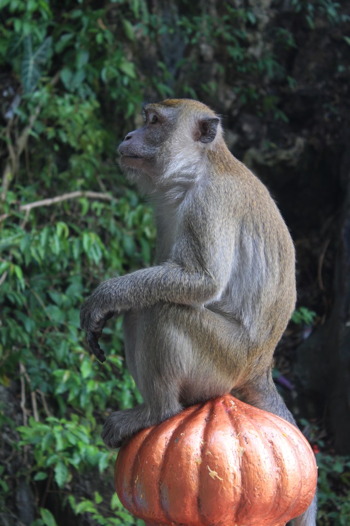 Although we were not seeing it in its very best light, we could appreciate the beauty and the sheer scale of the caves. The exterior is magnificent with its 272 rainbow steps up to the mouth of the cave and the colossal gold statue standing guard, but the inside of the cave is where you are truly amazed. Worshipers, tourists, monkeys and chickens congregated in their masses to view the colourful, decadent shrines – or just pinch a few bananas leftover from last night’s festivities. The combination of natural and man made beauty really is a sight to behold and it was well worth spending our one touristy day in KL on this day trip.