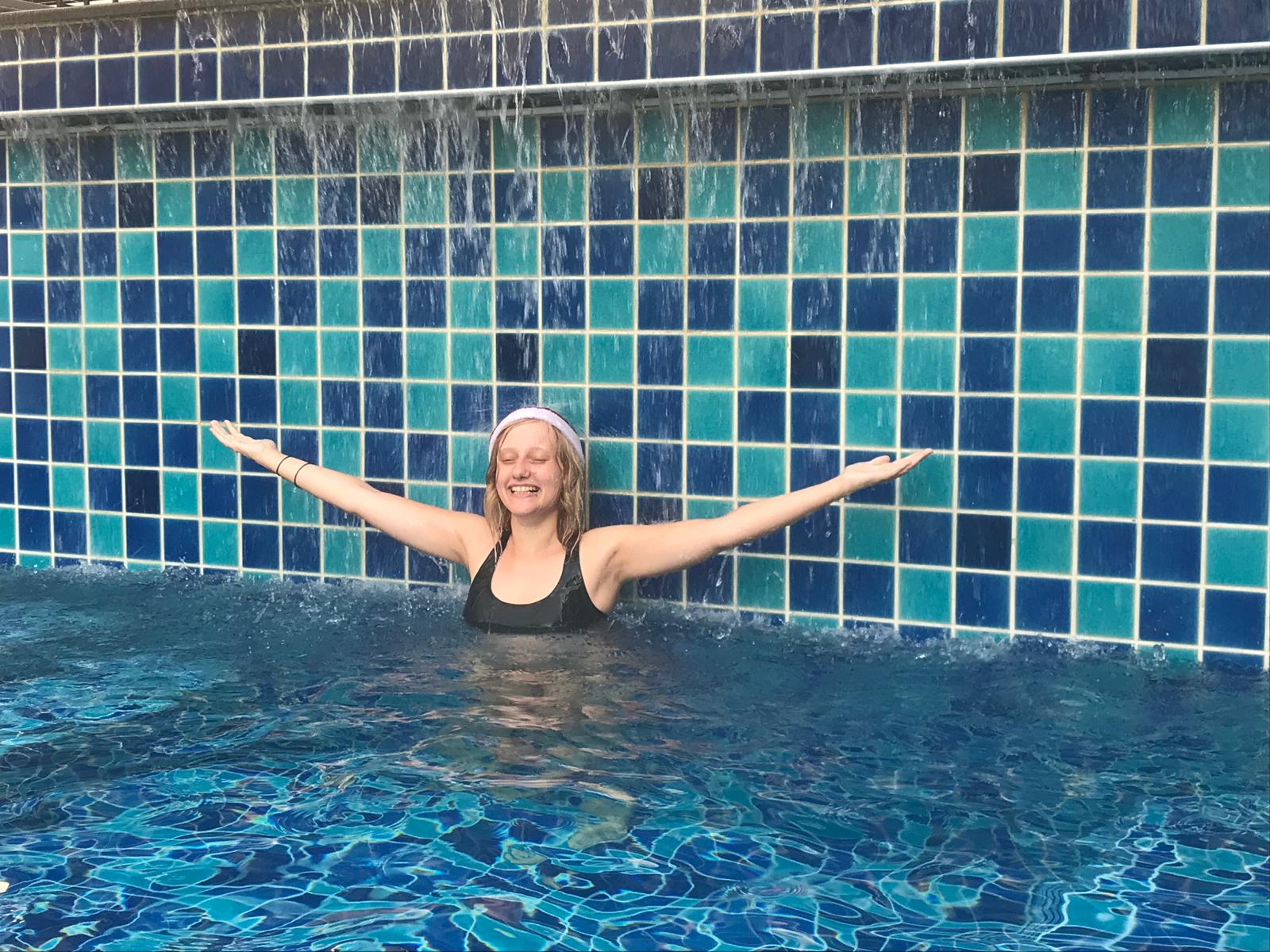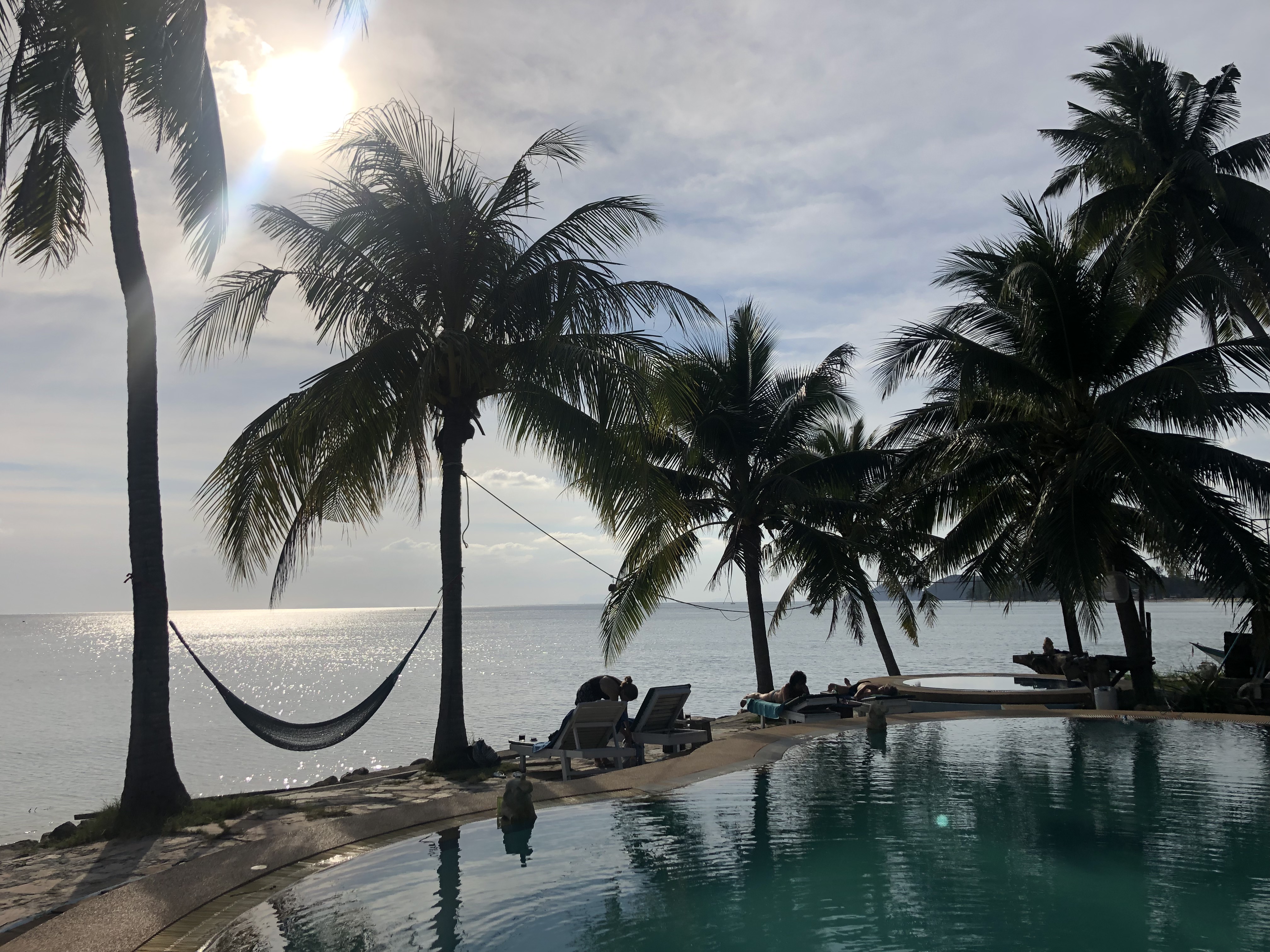 Somehow on our final day we managed to all make it for free breakfast before it ended at 10.30am (just), but most of us skulked back to bed for a few hours. This was a day of absolute laziness, relaxing in hammocks or by the pool, or in the boys’ case, just asleep in bed!