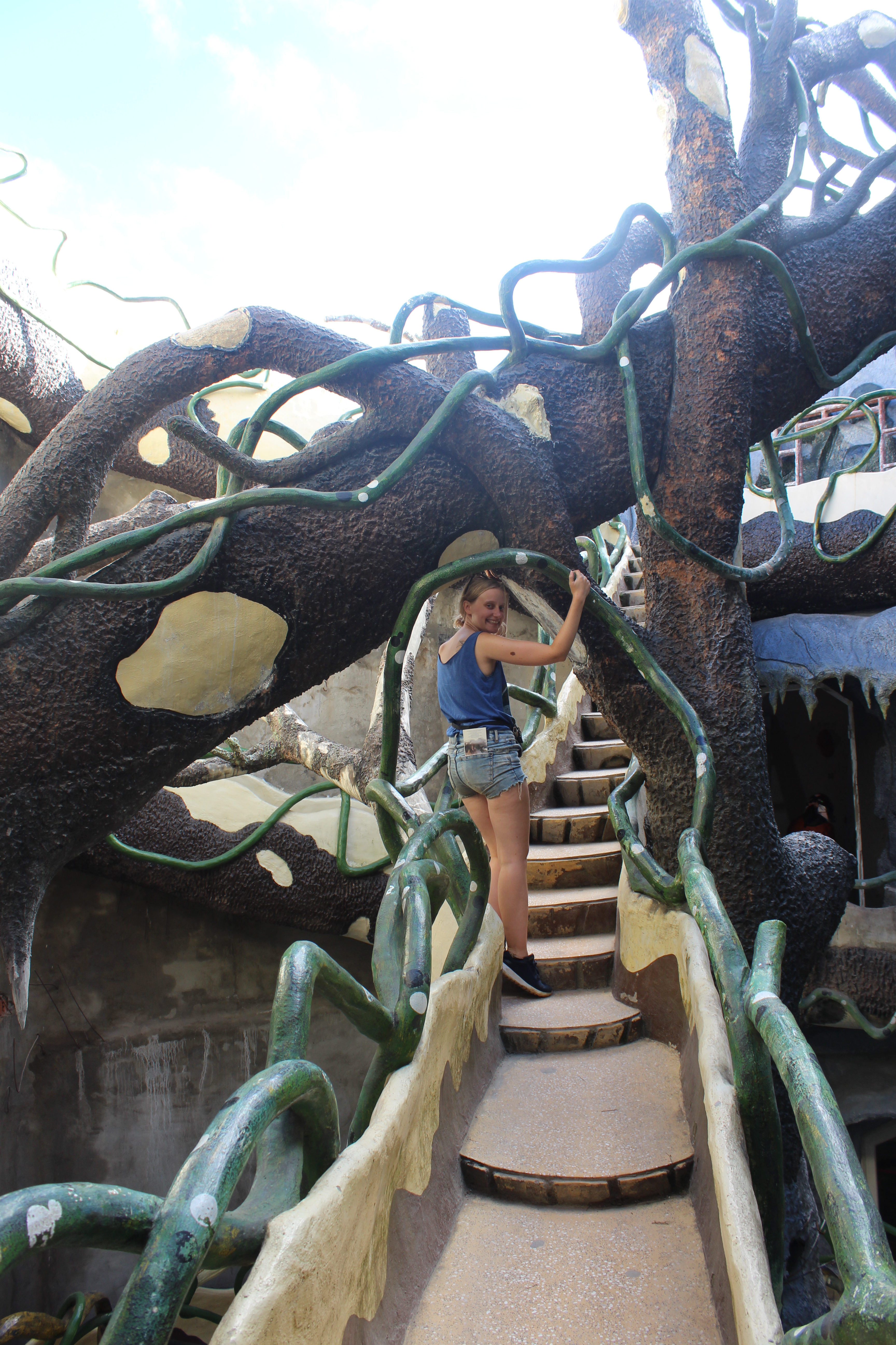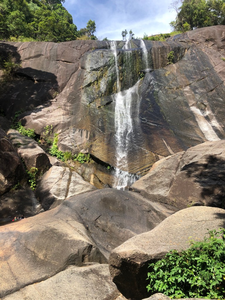 Next we headed to the 7 Wells Waterfalls which…you guessed it, was formed from 7 wells. We made the hike up the 300-odd steps to the top, and my god did we complain about it in the heat. At the top we were greeting by an awesome sight – lots of little pools where you could swim. The rocks were really slippery with algae, but we quickly learned from other people that this made it an awesome slide, and we slid down the rocks! The view was great – we could see down the waterfall, the sea, and up to the mountains and the cable car. After a bit of floating in the pools, we headed down to the bottom and did pretty much the same thing.