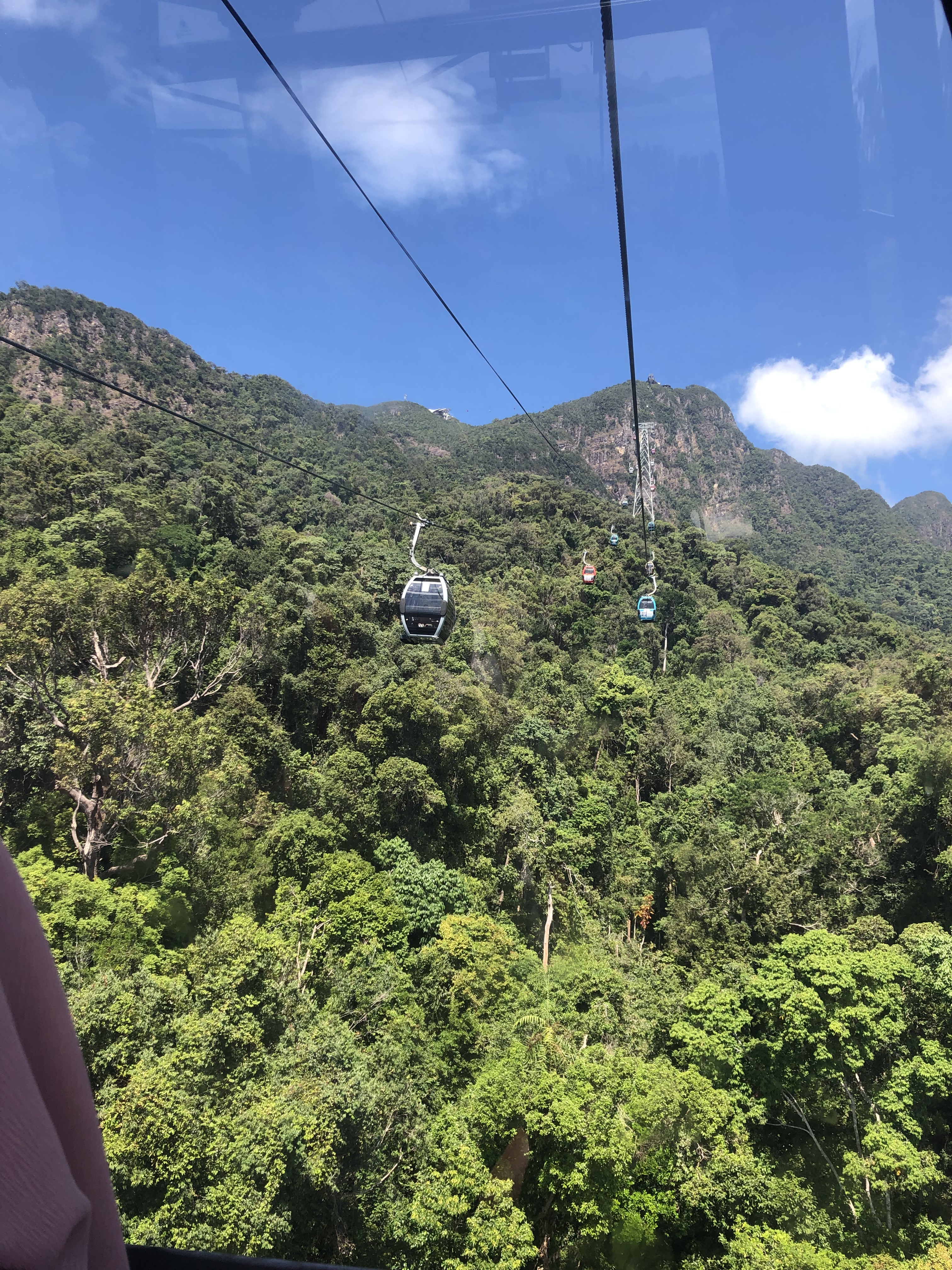 The cable car is one of the must-dos in Langkawi. The president of Langkawi had the idea for it when flying over the mountains in a helicopter in 2000, and in 2001 his dream became a reality as work began – with Austria’s finest architects coming across to construct it. It is the steepest cable car in the world and also has the most distance between supports. Something like that anyway, I’m writing this after a glass of wine – but I believe this to be true.