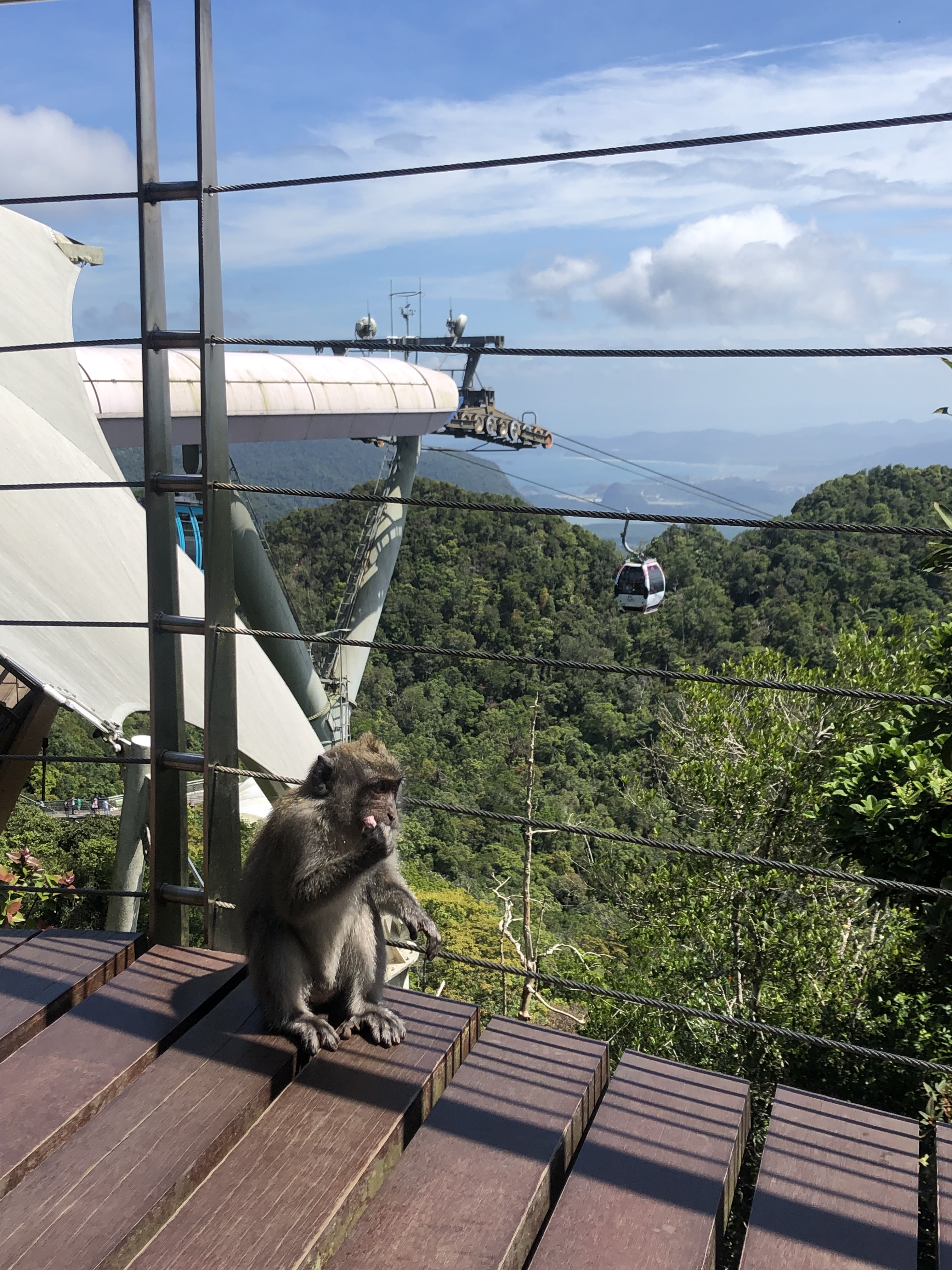 There were a couple of viewing points along the way, and the views were superb. On a clearer day, you can see some of the Thai islands, but on our day all we could see was blue – we couldn’t actually tell where the sky ended and the sea begun, which was pretty cool. And the views of Langkawi were great – what a beautiful, tropical island it is!