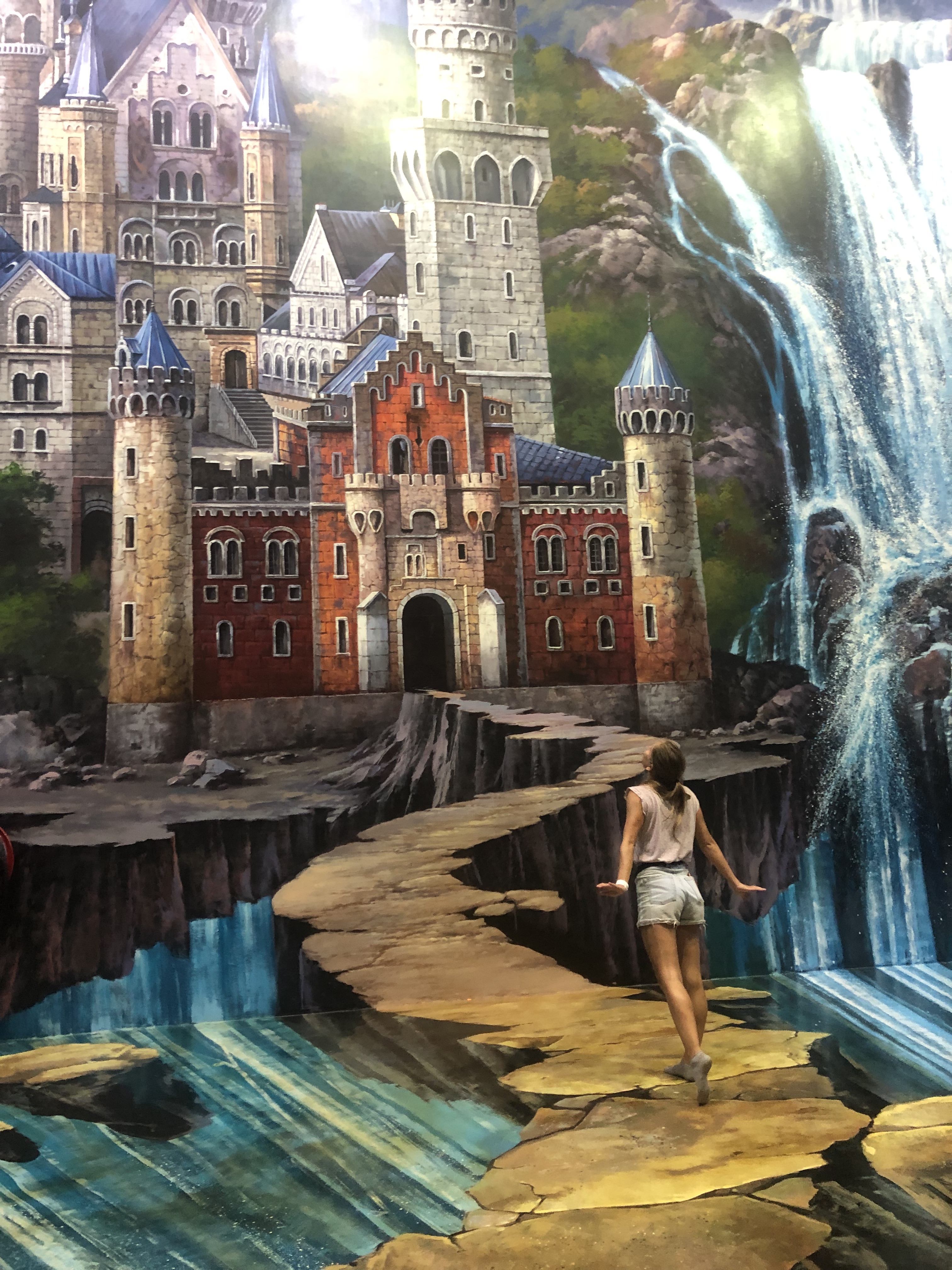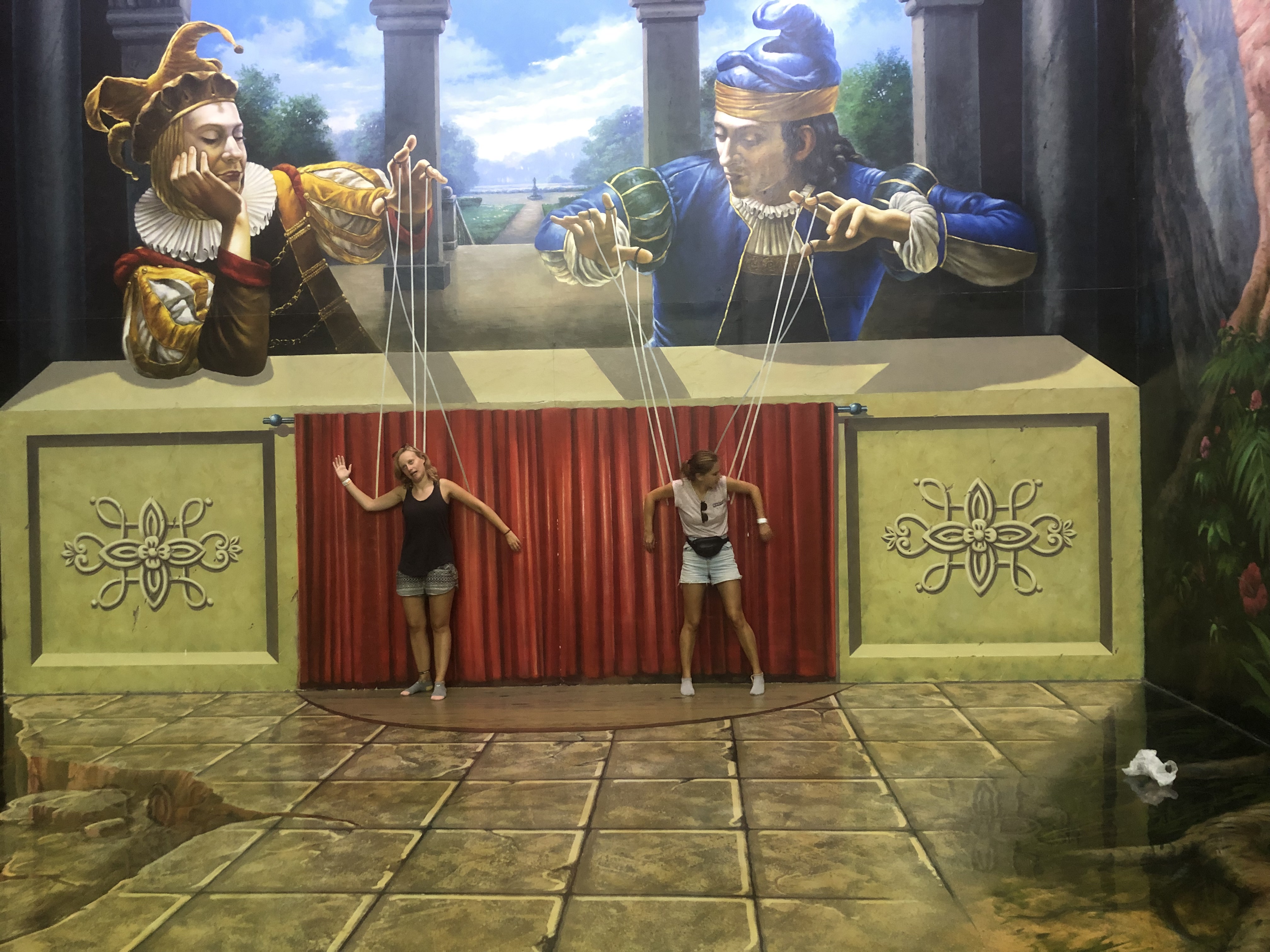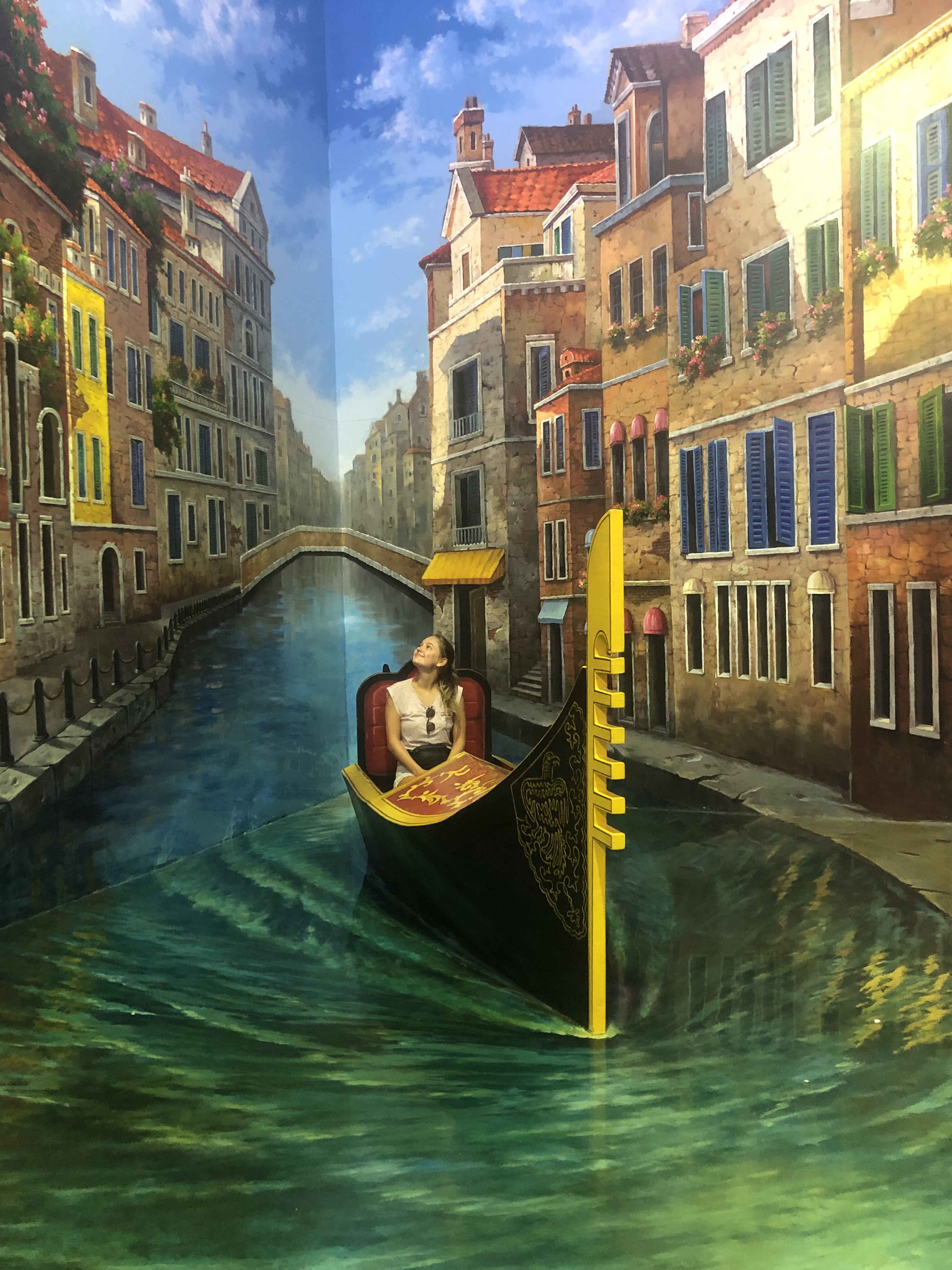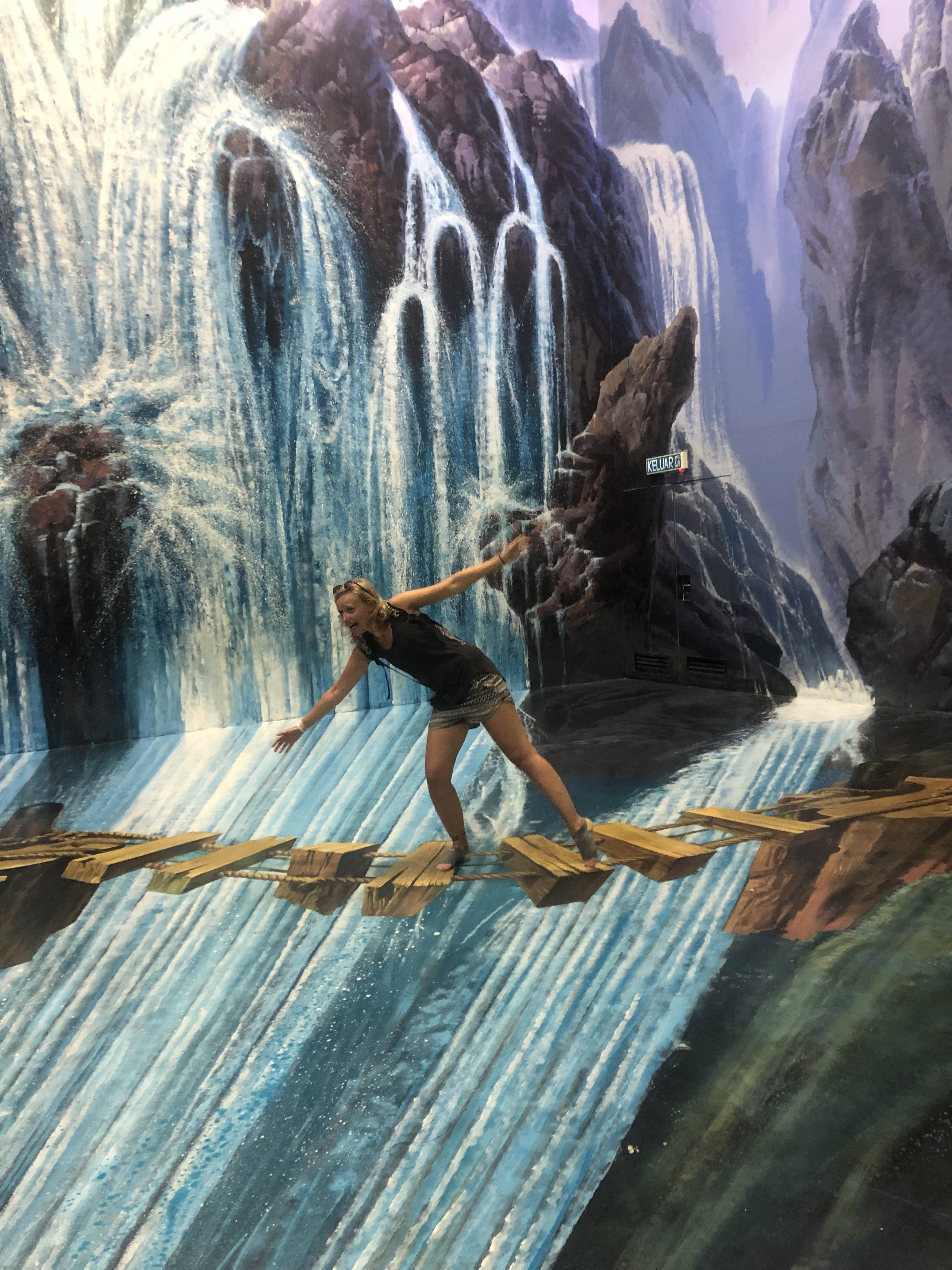 Included in our ticket price was the 3D art museum, so we thought we’d check it out. It was basically loads of optical illusions that you could take pictures in front of (yeah, spoiler, I didn’t swim underwater and Chloe didn’t find a mysterious palace. But it was very fun and we enjoyed an hour or so goofing around taking pictures. Then we had doughnuts for lunch. At this point we decided we quite like being adults, cos we can do what we want.