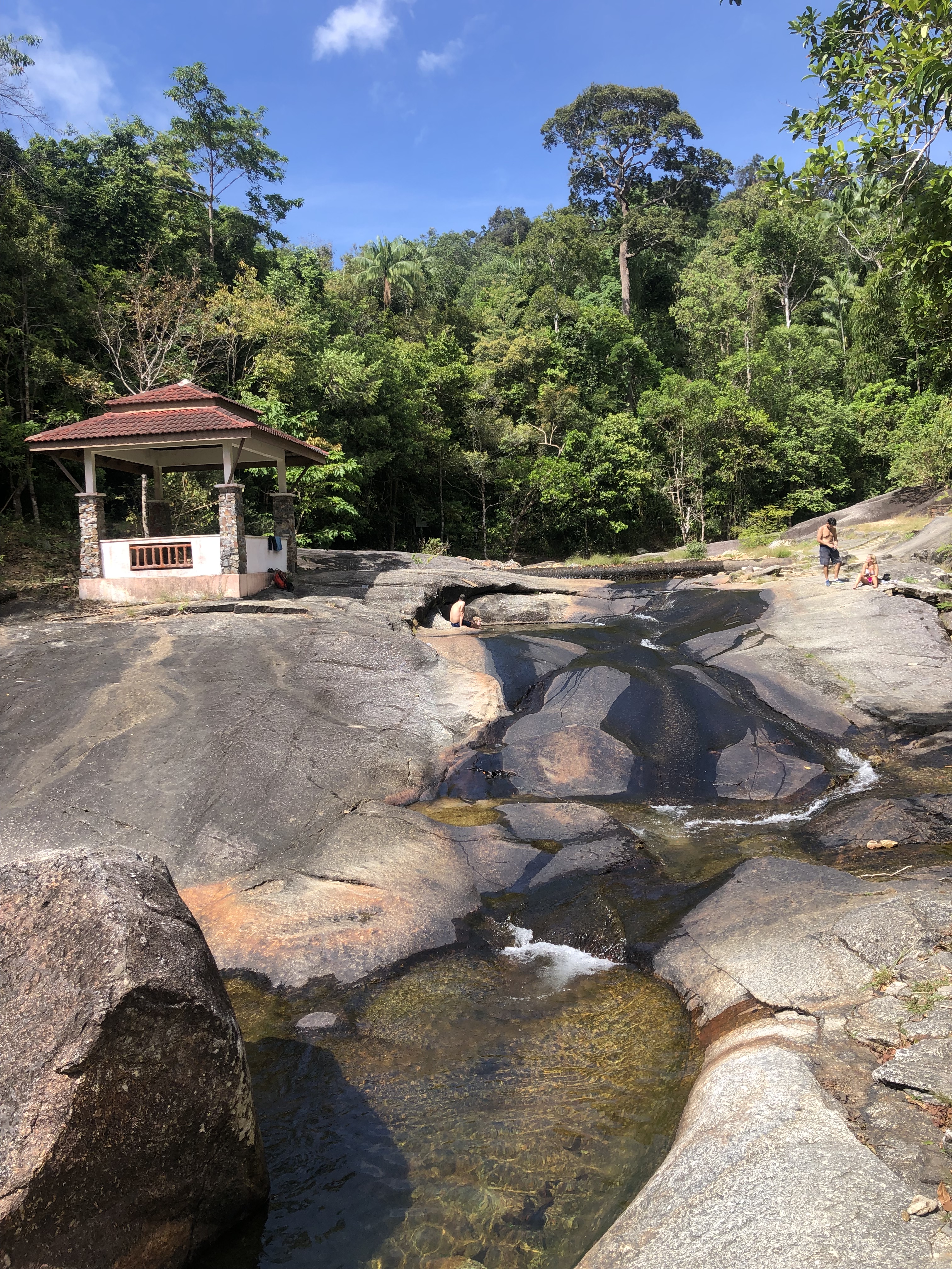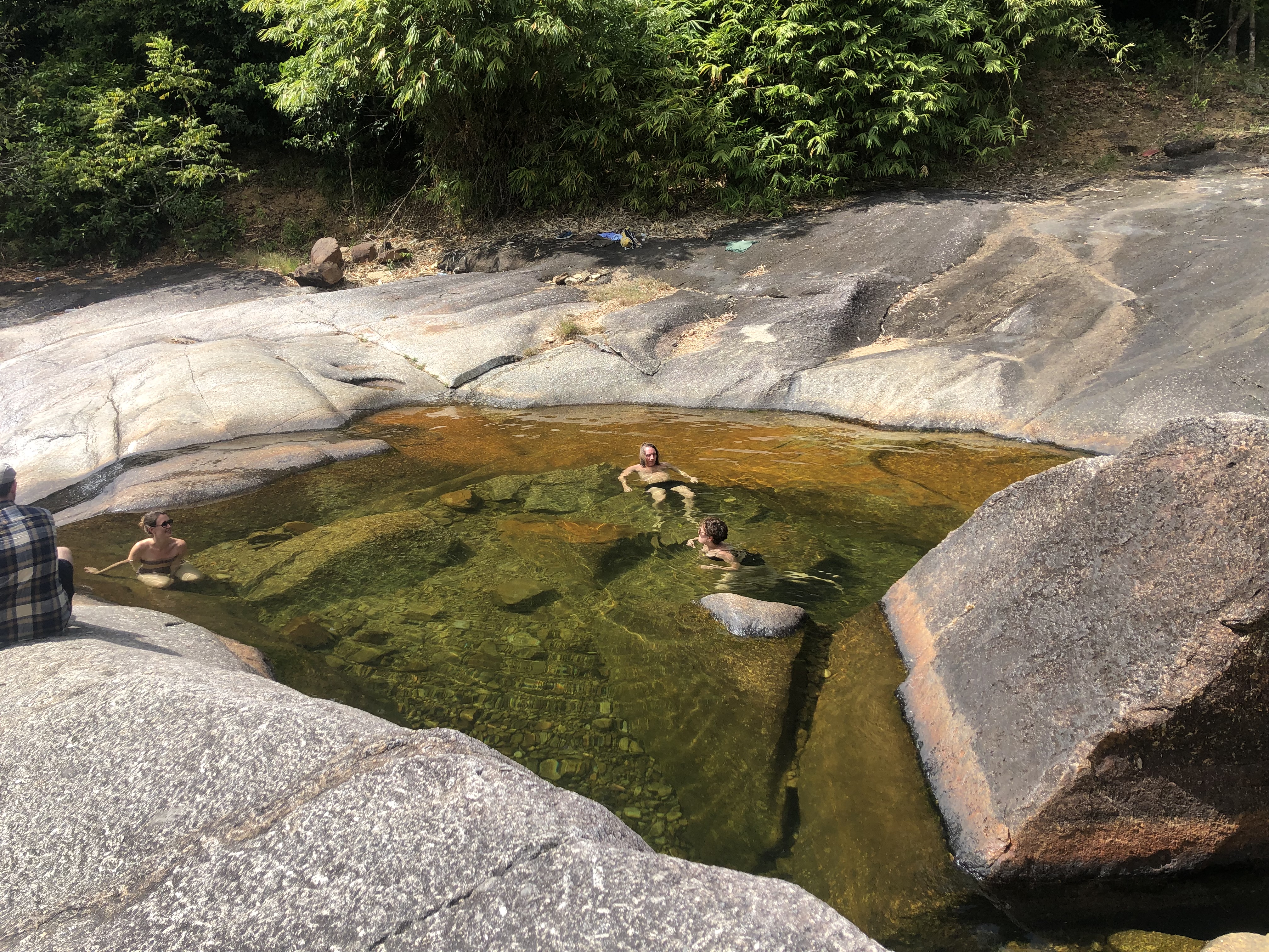 Next stop was the Pembok waterfalls, where we managed to meet up with Mario and Eamon. The waterfall was really cool, and we were quick to clamber over the rocks to get to the waterfall. The waterfall was so fast-flowing it was hard to get underneath it without being pushed away, but we all gave it a good go.