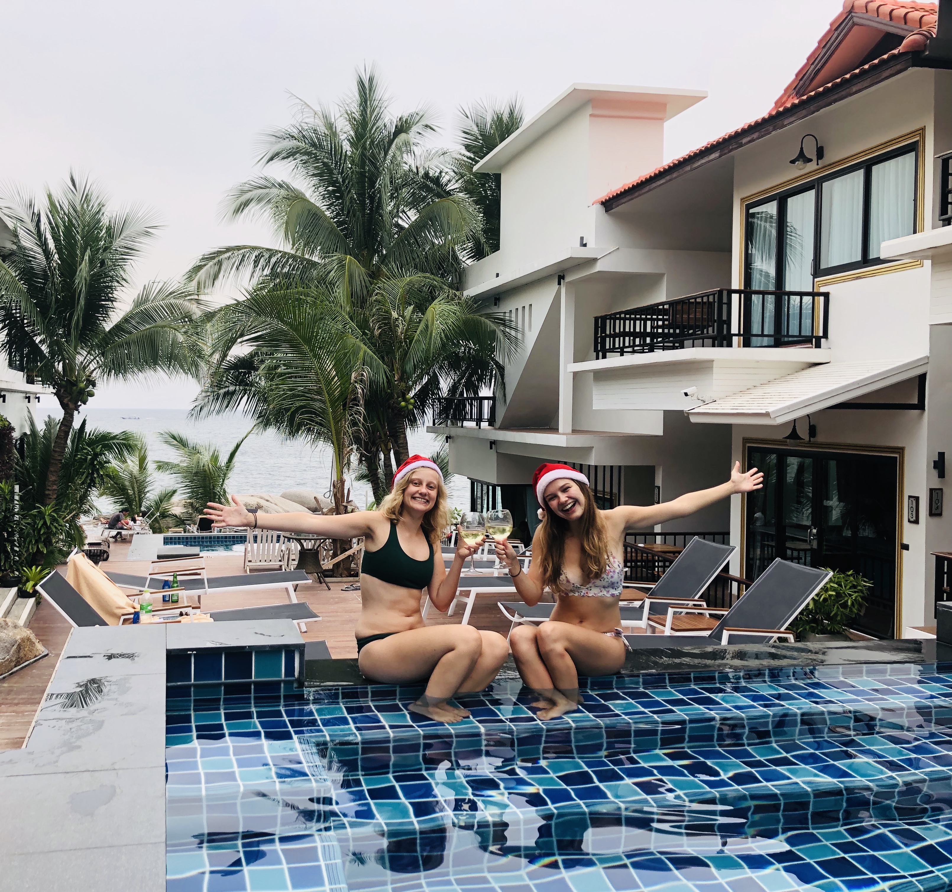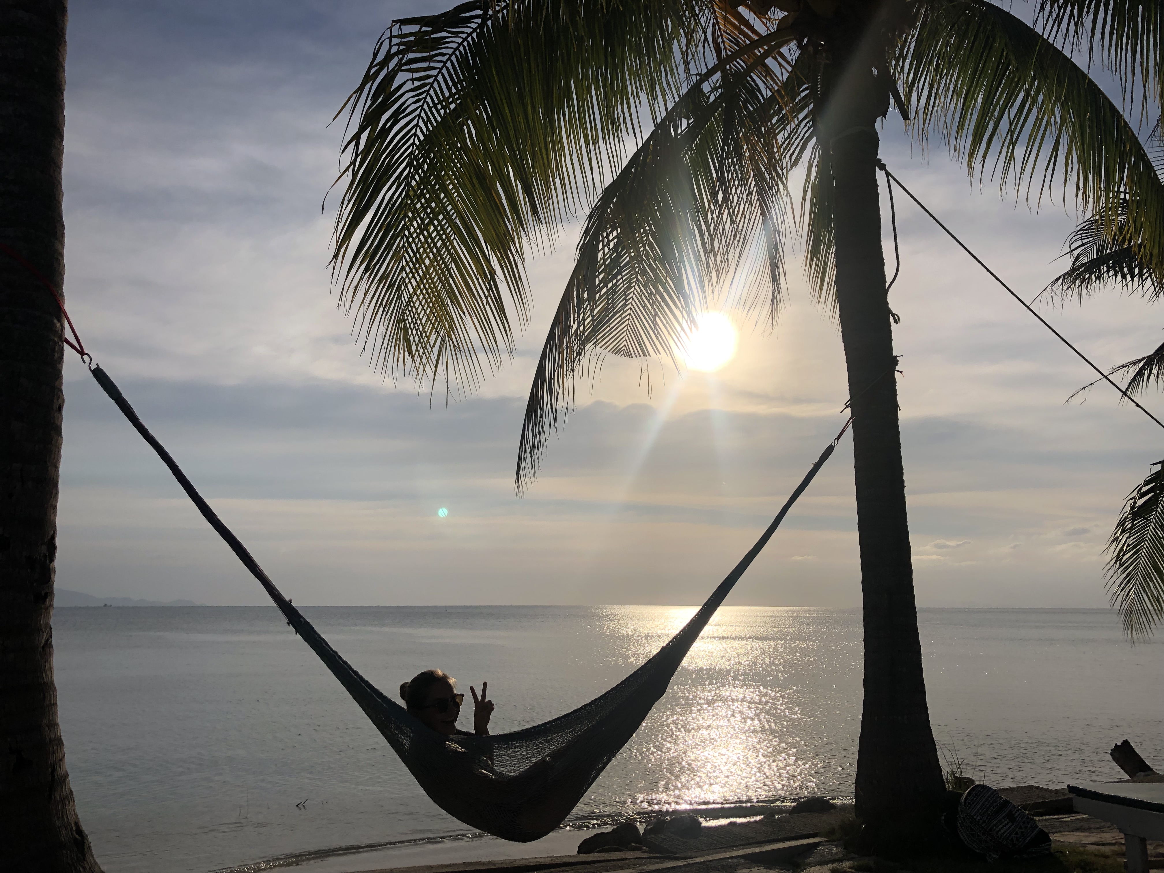 At around 4pm the downpours begun. We’d seen rain like this once before in Bangkok, but it was pretty mental. We were trapped on a rooftop in our hammocks (luckily sheltered) for a while! When it finally calmed down we got ready for the evening and went out to the town. There was a parade going on and a big muay thai fight in the town centre. Chloe and I skipped the street food as it was still drizzling, and went to a traditional Thai restaurant full of locals for dinner. We’re a big fan of curries so we shared a red and a yellow curry. They were beautiful. Our favourite is the red curry (the mildest, and tastiest) but green and yellow are also a hit. Definitely our favourite Thai food.