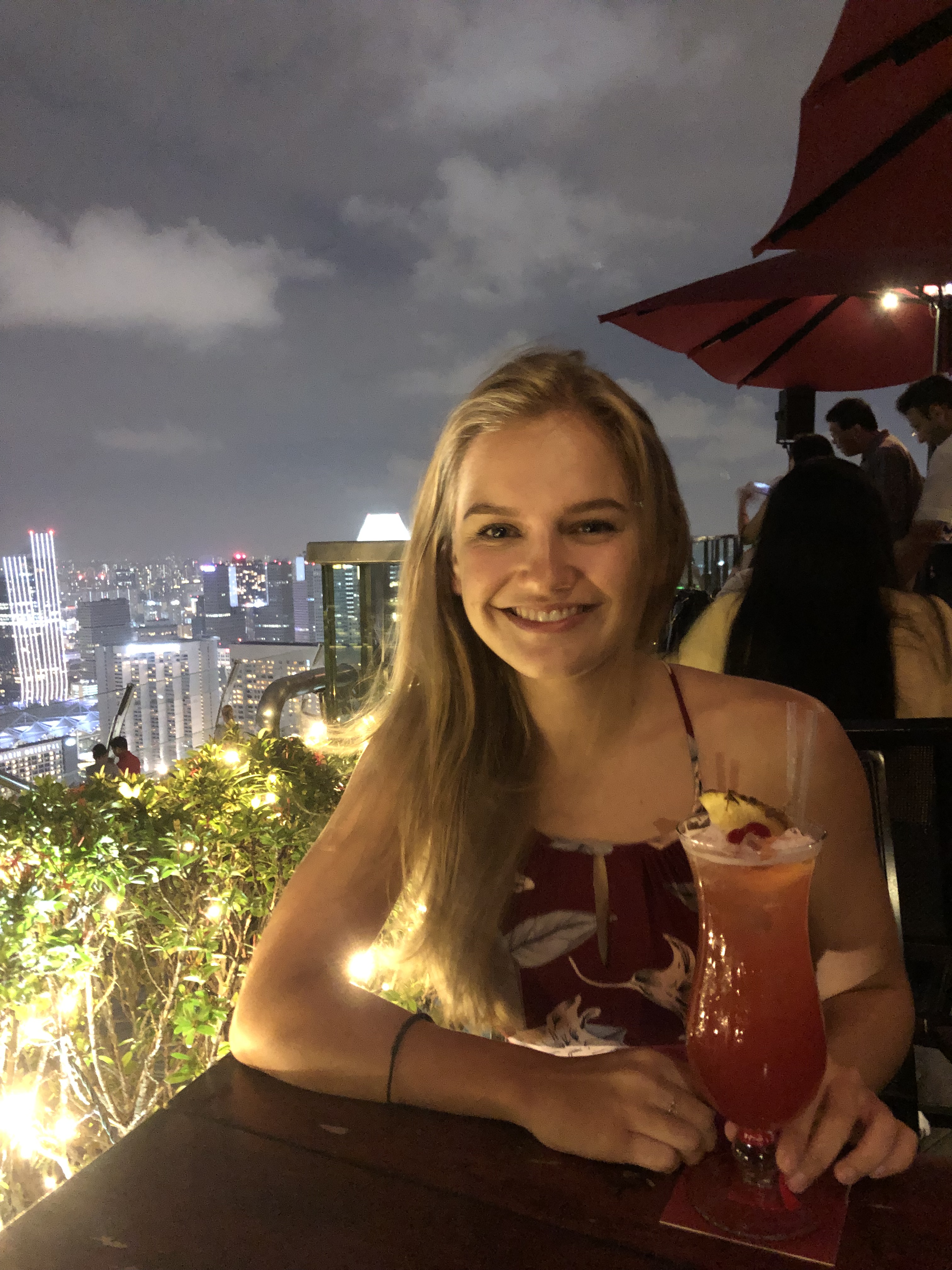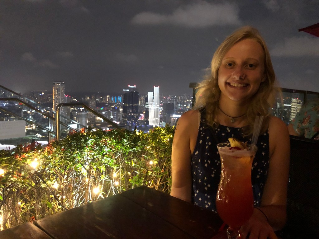We finished our time in Singapore in the fanciest way possible – with a Singapore Sling each on the rooftop of Marina Bay Sands hotel. We enviously looked over the hotel guests enjoying the rooftop infinity pool, and vowed to return when we’re rich (rooms start at £400 per night….our trip average is about £4 per night!!)