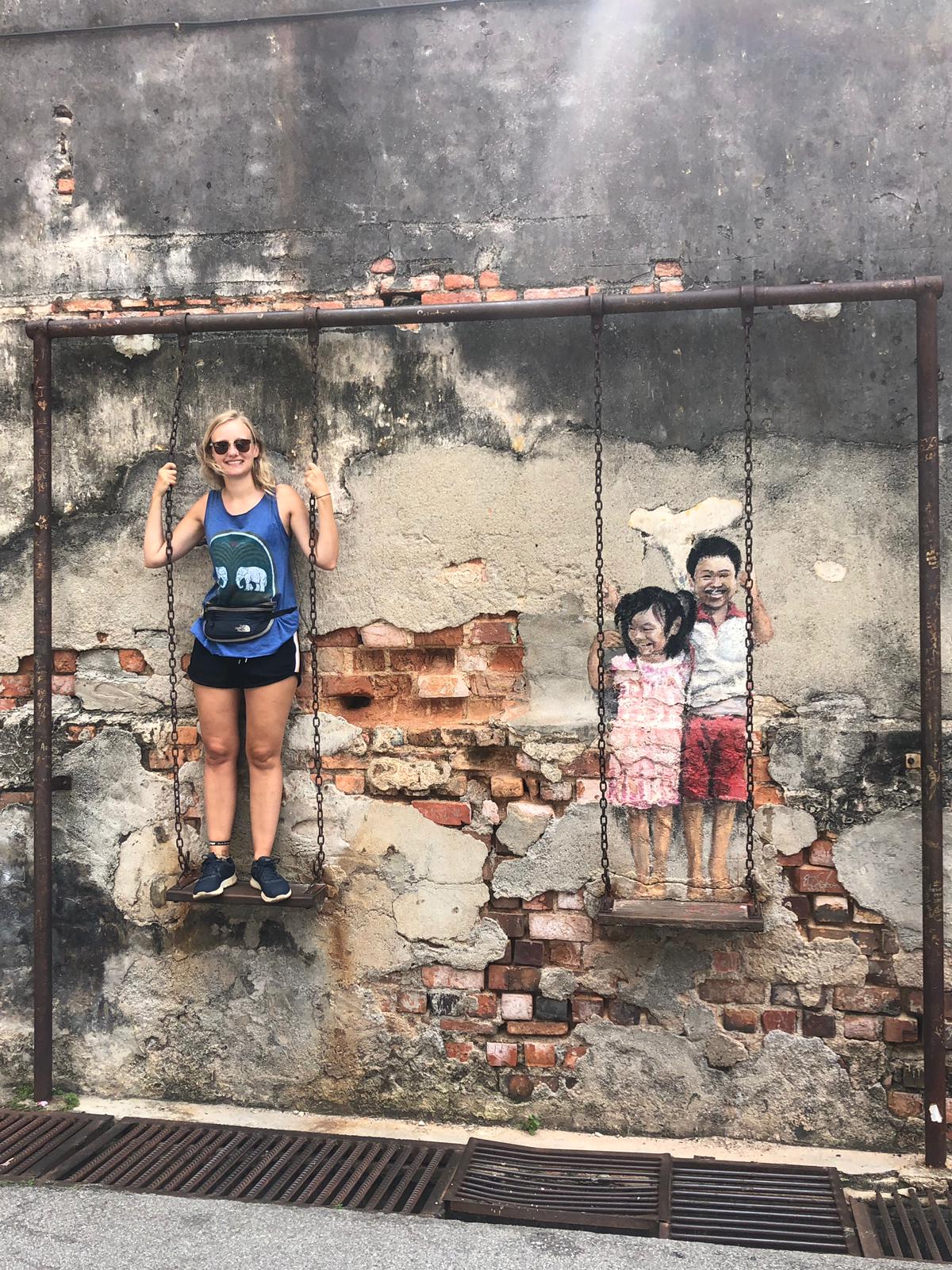 Georgetown is famous for its ubiquitous street art that’s scattered around the city, with wall paintings and sculptures hidden behind just about every corner. One of our favourite things to do here was the self-guided street art tour; we took a little map from the hostel and went off exploring, finding all the suggested art pieces we could, and posing for pictures on the various interactive sculptures.
