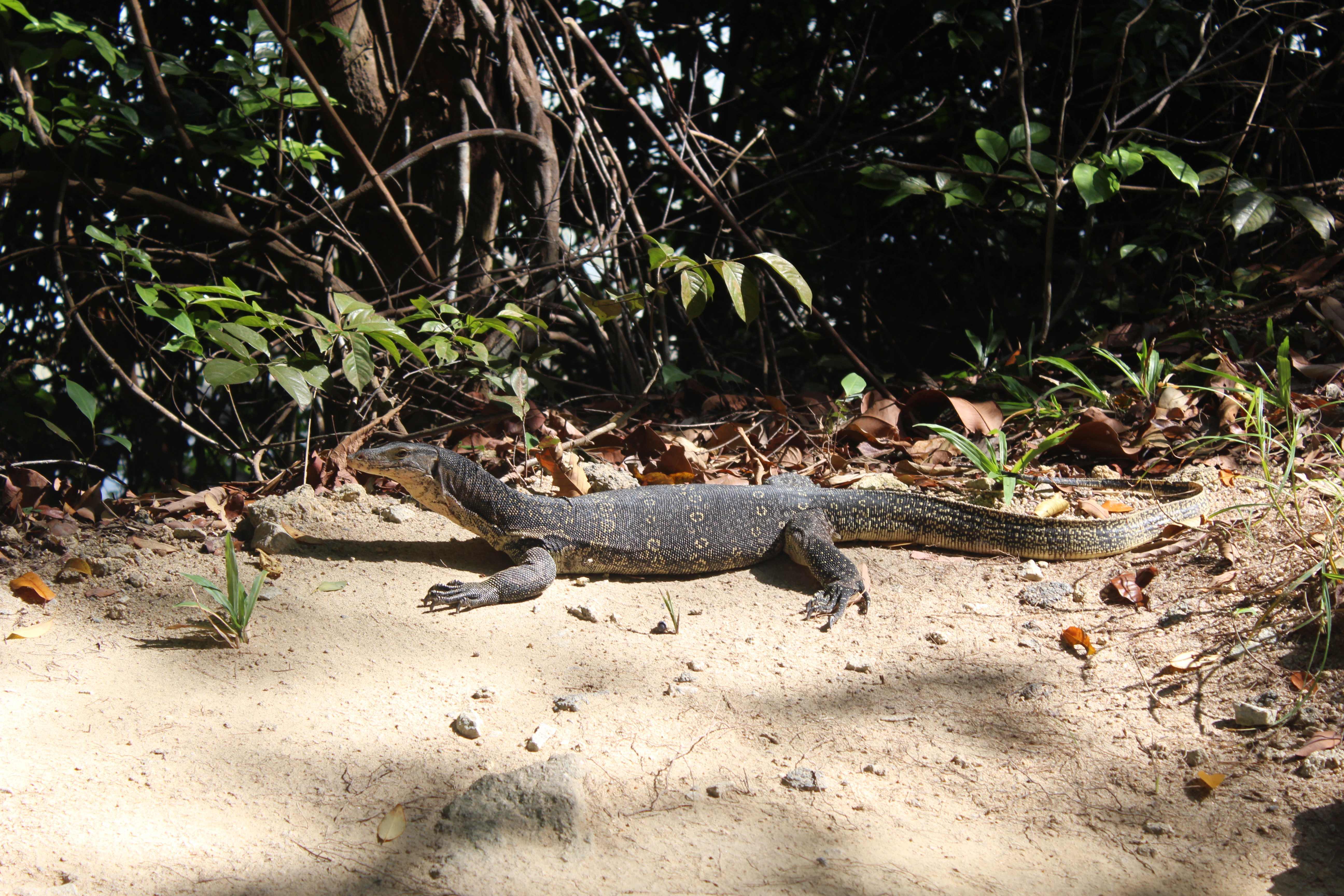 On the short hike that was still accessible we spotted many giant monitor lizards – pretty startling at first, but then amazing to watch them lumbering across the path or looking much more graceful as they swam along the shore.